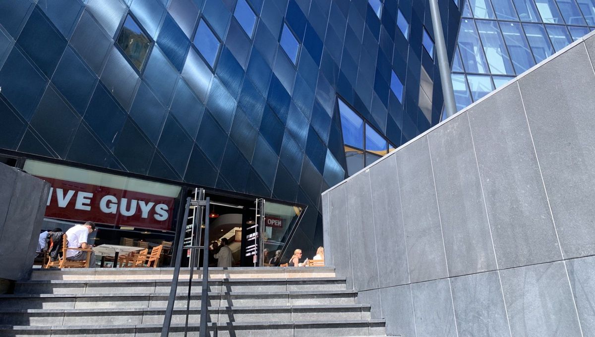 L’edificio, di fortissimo impatto architettonico, con le sue forme ispirate alla pietra azzurrite, richiama in ogni facciata a dei reticoli cristallini. Il risultato è un armonioso e scenografico blocco di acciaio e vetro, con facce e spigoli che salgono fino a 40 metri di altezza.