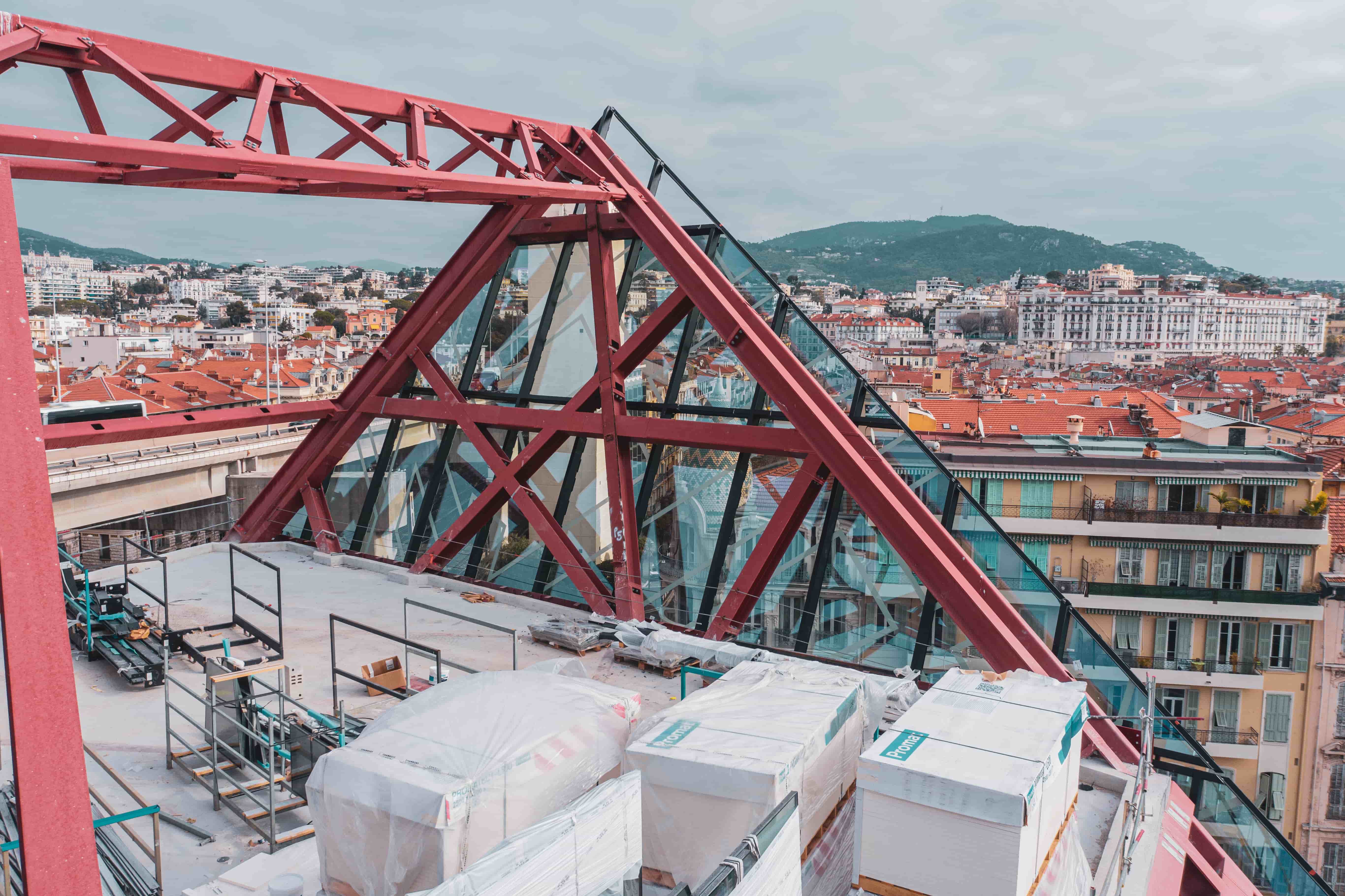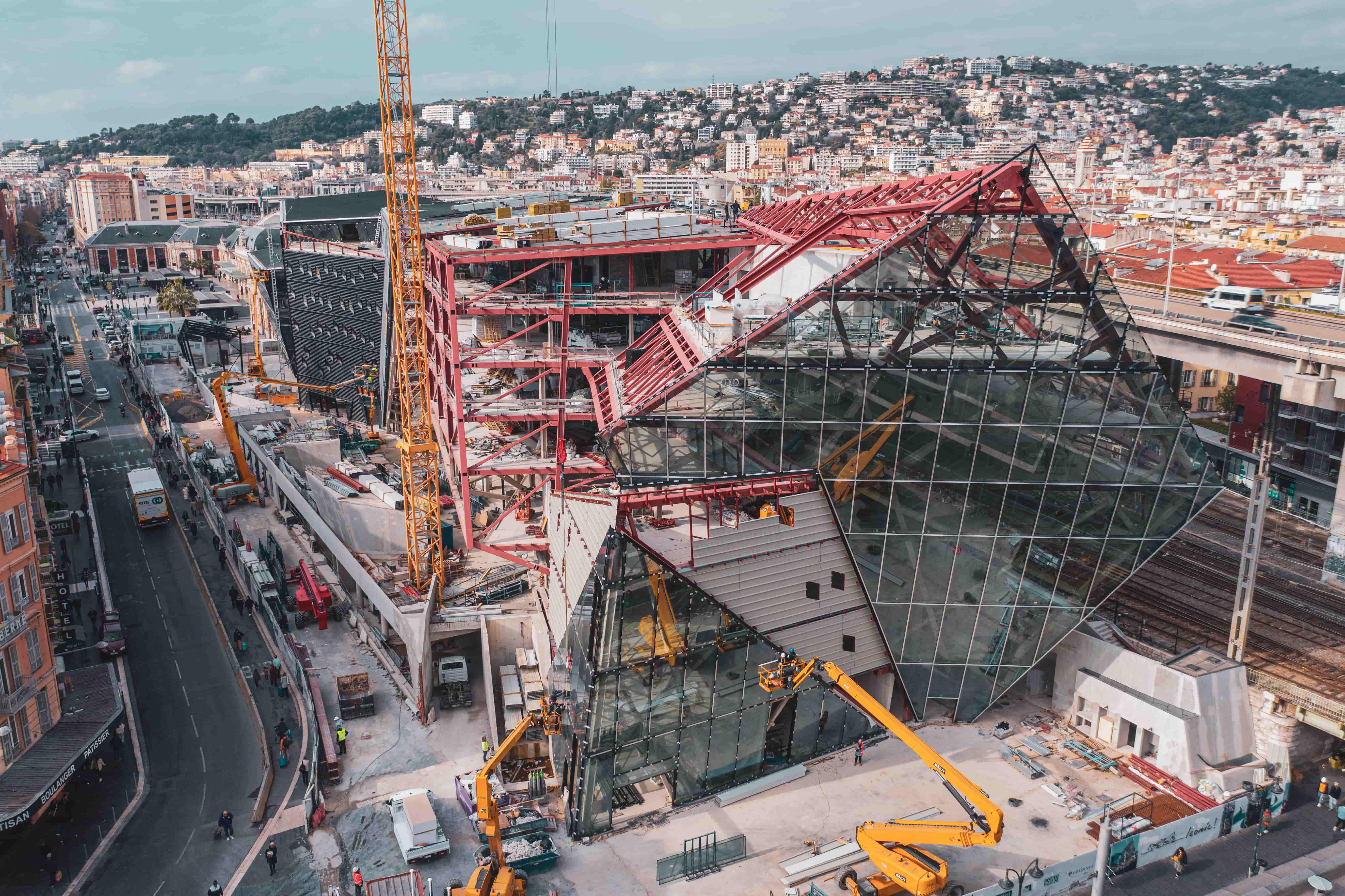 L’edificio, firmato dall’architstar Daniel Libeskind, è nato nell’ambito di una riqualificazione urbana della zona intorno alla stazione Thiers di Nizza, per fungere da trait d’union tra il quartiere Nord e quello Sud della città, oggi separati dalla linea ferroviaria e dalla via Pierre-Mathis.