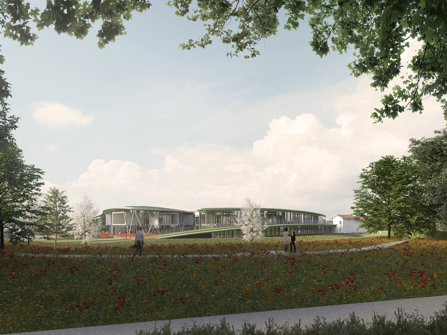La copertura si configura come una “pelle vegetale naturale” che, incisa e sollevata, si sovrappone plasticamente ai volumi abitati.